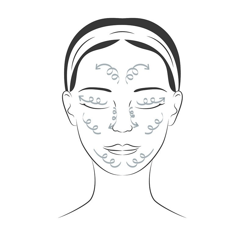1) Sur la peau sèche, masser la gelée sur les doigts quelques secondes puis appliquer sur l’ensemble du visage.